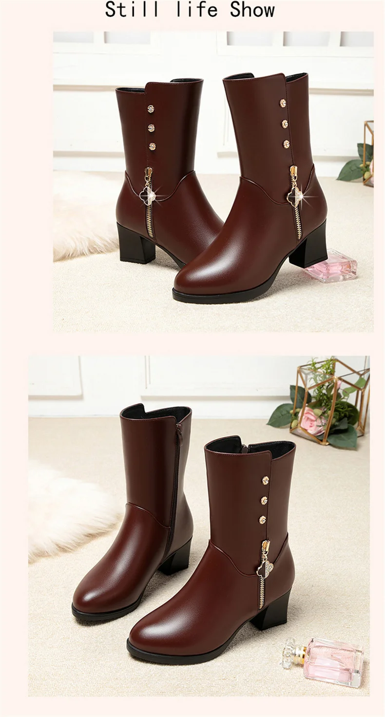 Step into warmth, comfort, and timeless style with these ultra-cozy, mid-heel winter boots featuring a plush lining, sleek leather finish, and elegant gold detailing.